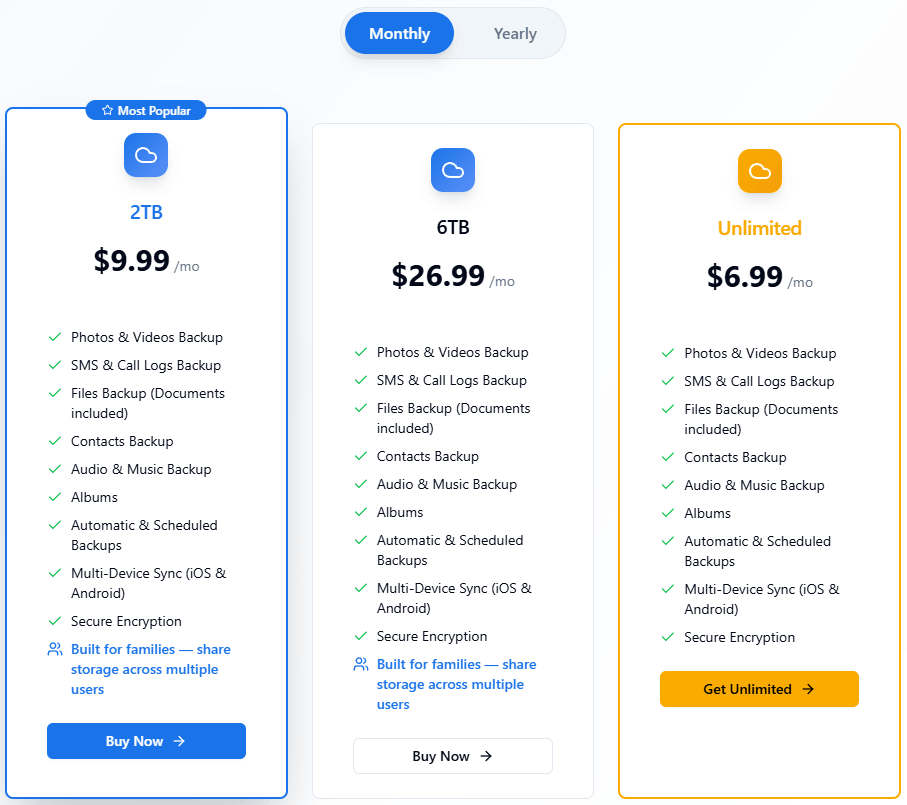 Ceny ve společnosti G Cloud jsou opravdu výhodné. Roční předplatné nabízí úspory, které nelze přehlédnout. Spočítejme si to. Oblíbený balíček s prostorem 2 TB stojí při měsíční platbě přibližně 212 Kč. Při roční platbě je to asi 2 120 Kč, což je v přepočtu asi 177 Kč měsíčně. Roční předplatné je tedy jednoznačně levnější, pokud porovnáme předplatné s kapacitou 2 TB. Pro méně náročné uživatele je v nabídce předplatné s kapacitou 150 GB za cenu cca 422 Kč ročně. Pro nejnáročnější zákazníky je v nabídce předplatné bez omezení, které můžete platit měsíčně nebo jednou ročně. Za toto předplatné zaplatíte přibližně 148 Kč měsíčně, nebo jednou ročně zaplatíte přibližně 1 272 Kč, což vychází na 106 Kč měsíčně, což je oproti běžné měsíční platbě značná úspora.